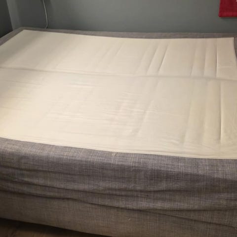 Str 150x200. Har kjøpt ny overmadrass i memory foam som ligger på toppen.