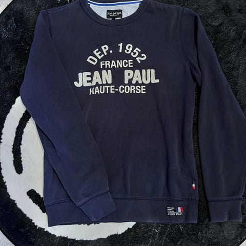 Jean Paul Royan Hettegenser pent brukt str S blå økologisk bomull