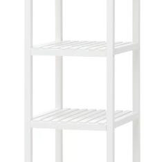 IKEA muskan hylle Trehylle med fem nivåer, laget av tremateriale. Hylle har en naturlig trefarge og åpen design med spalter på hvert nivå. Egnet for oppbevaring og organisering av ulike gjenstander.