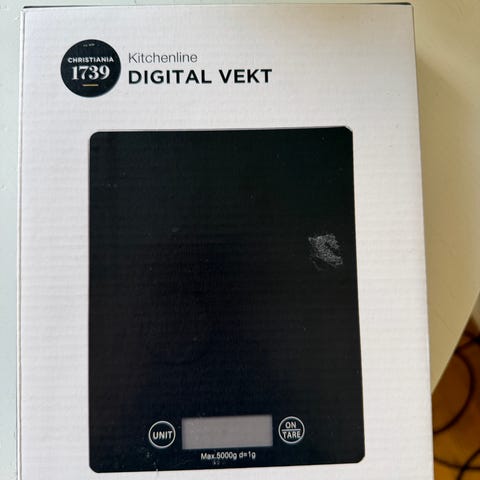 Vekten ble kjøpt i 2023 på Kitchen. Er ikke blitt åpnet. Ny pris 629.
