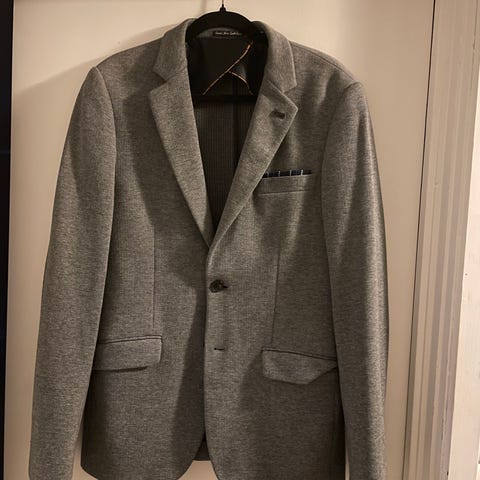 Scotch & Soda The Rocker dress i grå farge, laget av ullmateriale. Jakken er designet for herre og har størrelse 52. Dobbelspent front og en smal passform (skinny).