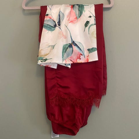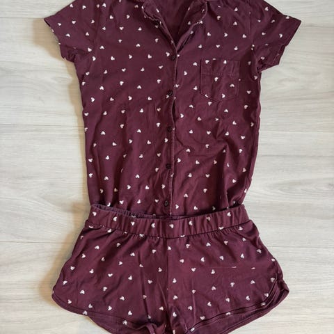 Huber pysjamas (bukse og genser) i størrelse M. Genseren er grønn, buksen er grå med grønne og grå ruter.
