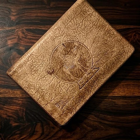 Vintage dokumentmappe i brunt skinn.
