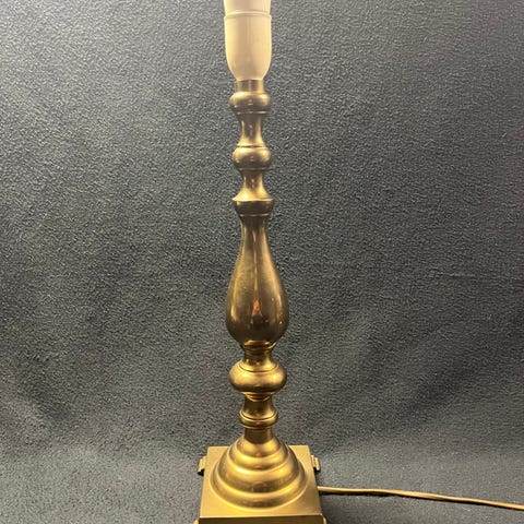 Eldre, dekorativ messing lampe fra Bison. Den er hel og pen, men små flekker/bruksmerker forekommer. Ikke prøvd å fjerne disse. Ujordet støpsel. Høyden er 34,5 cm uten pære.Pæren kan følge med om ønskelig.