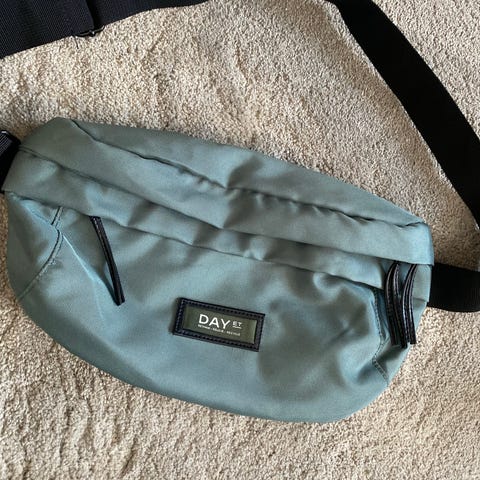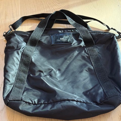 DAY ET bag i grå farge, designet for unisex bruk. Vesken har to bærehåndtak og en justerbar skulderrem. Den har en romslig hovedlomme med glidelås og en mindre lomme innvendig for organisering.