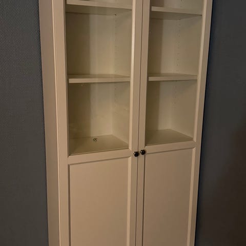 Pent brukt. Består av to seksjoner hvor overskapet enkelt kan løftes av. Hengslene til «vippedøra» er defekt, men det påvirker ingen funksjon og kan enkelt fikses ved å erstatt med et bånd e.l.