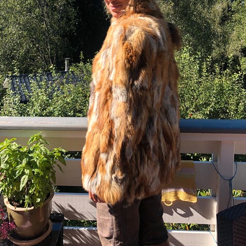 Revepelsjakke med lue, små bruksmerker i foret men ellers i god stand. Modellen på bildet er 175 og bruker vanligvis M/L og denne var for trang over skuldrene så vil si den er S/36