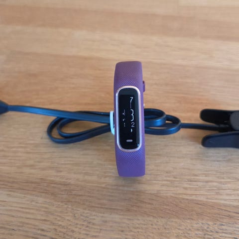 Garmin Vivofit 4 aktivitetsarmbånd i svart farge. Enheten måler ulike helse- og aktivitetsparametere og er designet for daglig bruk.