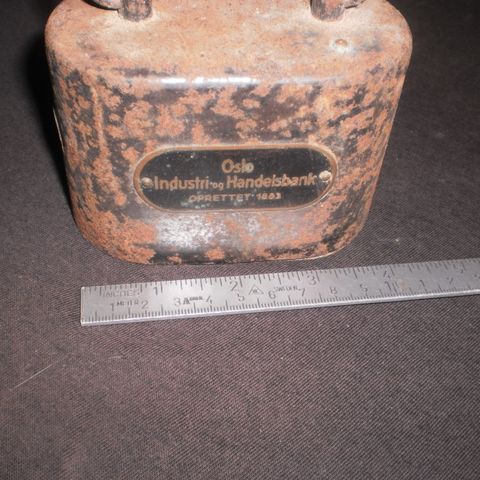 Perfekt for samlere av svenske banker, vintage sparebøsser eller metallobjekter.