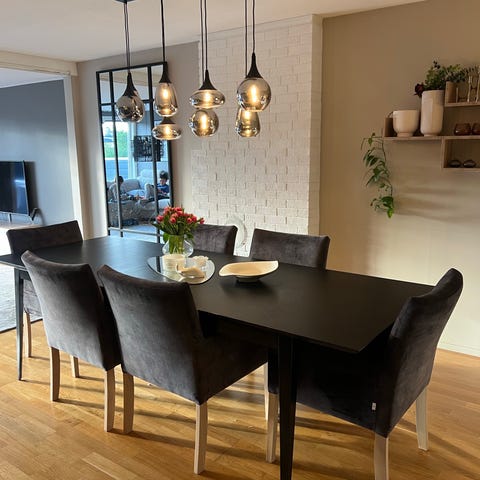4 stk Ella spisestoler med armlene i størrelse M selges billig grunnet flytting. Sorte eik bein og lys grå lin tekstil. Stolene er kjøpt helt nye for 2 år siden.