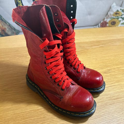 Dr. Martens støvler, tror det er en størrelse 36. Støvlene er laget av skinn, har snøring og en solid gummisåle. Pent brukt