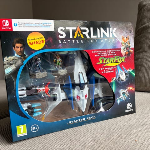 Ubisoft Starlink er et spill for Nintendo Switch. Følger med 2 romskip, ene har en liten skade (mangler en vingegreie) men dette påvirker ikke spillet i det hele tatt. Samt 2 våpen til flyene. Det er også med 2 personer som kan settes inni flyene. Det er også med 2 spesial kontrollere til dette spillet :)