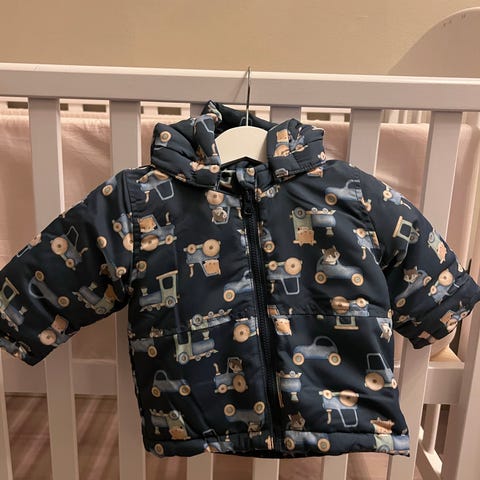 Kul jakke med bilprint fra Name it i str 62 (2-4 mnd). Passer vår/sommer. Ny med lapp.