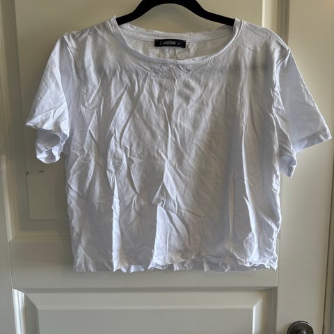 Ubrukt kortermet t-skjorte, krøllete etter oppbevaring.