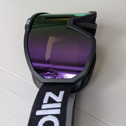 Brillene har et bredt justerbart stroppbånd med logo og en svart ramme. Egnet for bruk i vintersport og utendørsaktiviteter som krever beskyttelse mot snø og vind.