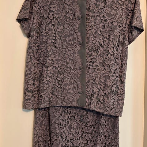 Begge deler viser slitasje, mest skjørtet som har en liten flekk bak som ser ut som blekemiddelskade.
