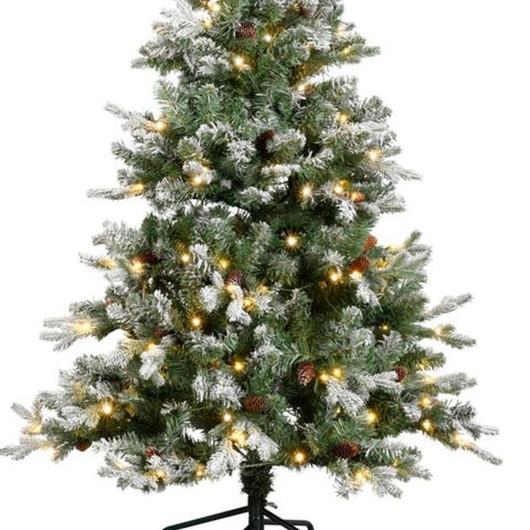 Selger et kunstig juletre på 210 cm med snøeffekt og integrerte lys.