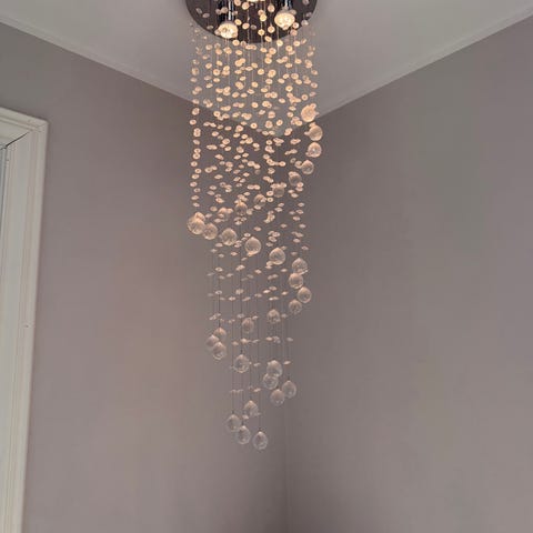 Metal Lux Astro i klar farge. Sprek og sjelden lampe som gir et spennende lys. Mellomvarmt lys