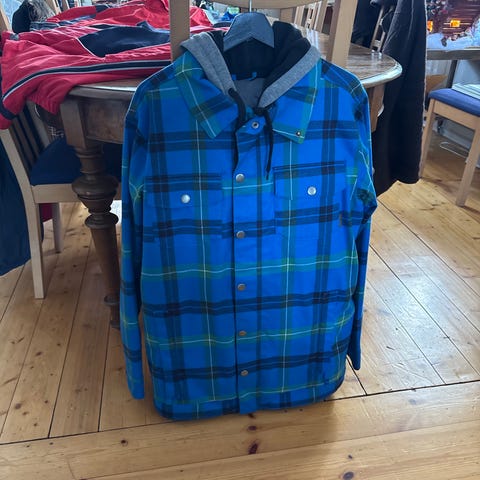 Jakken har hette med avtagbar pels, glidelås i front, og er laget for vinter- og snøbruk.