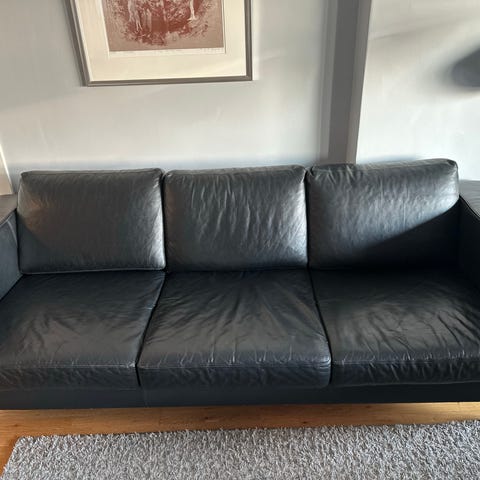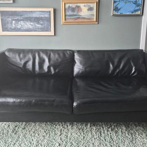 sofa, skinn, ekte, 3 seter, 3seter, sort, sete