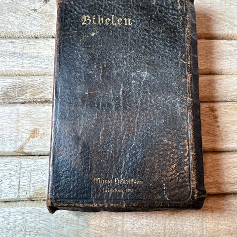 Bibelen Den Hellige Skrift bok med svart omslag. Inneholder Det Gamle og Det Nye Testamentet samt innledende bøker. Utgitt i 1901 av Det Norske Bibelselskap. Tekst på norsk.