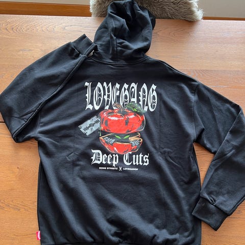 Står størrelse 52 som nok tilsvarer en L, lomme på ene siden opp revnet men tror det er lett og få fikset det, ellers er den hel og fin og sterk i stoffet.