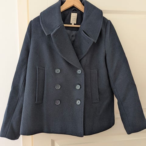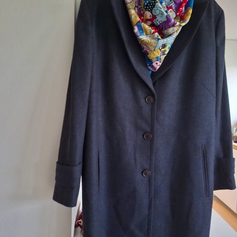 Nydelig kåpe i ullstoff, lys beige. Tror ikke den er brukt ( arvet av meg) prislapp inni pålydende 2499,-. Selges billig og kan sendes