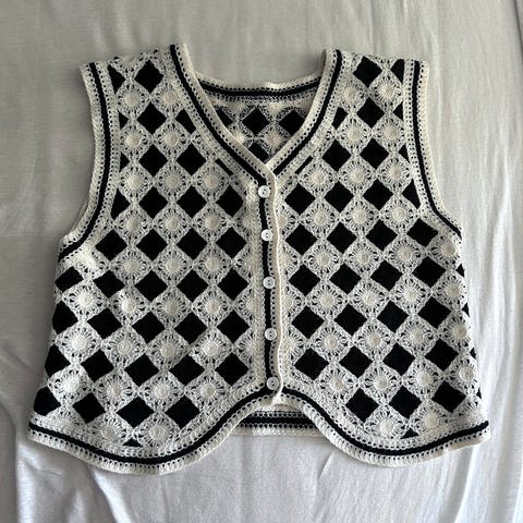 Unik retro håndlaget heklet vest 100% ull