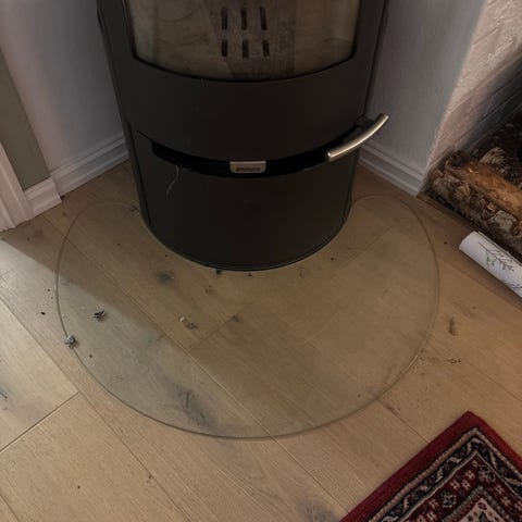 Glassplaten er den delen som skal være under ovnen, vi trengte ikke denne.