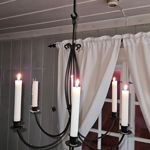 Lysekrone i tre for telys selges. Diameter 50cm. Fin å ha over spisebordet på hytta! Litt ugreit å sende pga størrelse.