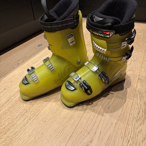 Pent brukte Nordica Crusader skistøvler i størrelse 40 eller 250-255- med grå og svart farge. Støvlene har fire spenner for justering og en solid konstruksjon egnet for alpinski. Materialet består av plast med foret innside for komfort.