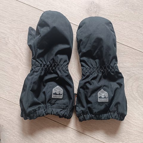 Hestra barnevotter i størrelse 116, unisex. Vottene er blå og laget av polyamid på utsiden, med en innvendig fôr i ull. Designet for å gi varme og beskyttelse til barn i kaldt vær. Vann- og vindavvisende med forsterket håndflate.