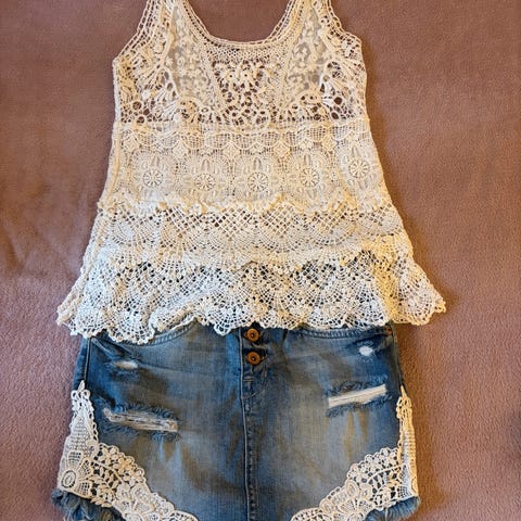 Skjorte kjole i jeans stoff, Kjøpt secondhand og alt av lapper er fjernet av tidligere eier, passer ca en large, spørs hvor oversized man vil ha plagget.