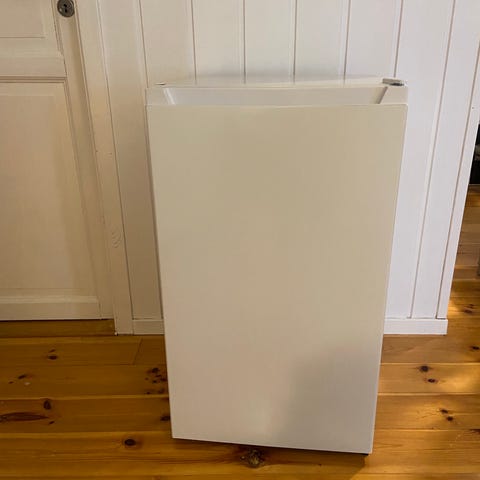 Selges 800,- kjøleskapet har vert i bruk frem til begynnelsen av desember. Har stått lagret i garasje, men med lukket dør, så det har kommet en liten lukt i det. Det er ikke veldig betydelig, så regner med det forsvinner med en liten vask innvendig.
