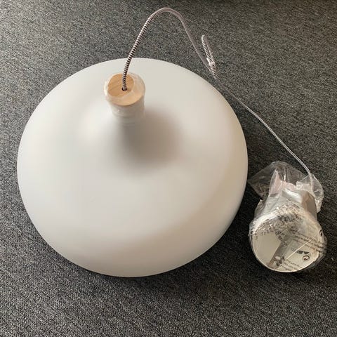 Brukt i ca 9 mnd men etter flytting til nytt hus uten takplass velger vi å selge denne fantastisk vakre lampen. Vi brukte den som lampe på soverommet, men den passer like så godt i stua som den gjør på kjøkkenet!