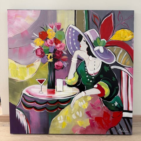 Malt av Heidi Nystad på lerret. Acryl, sand og sparkel og litt olje. Det måler 80x80 cm.