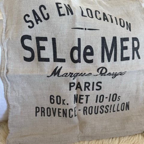 Riviera Maison White Sands Beach Resort pyntepute med stjerneformet design i beige farge. Puten har hvit piping langs kantene og brodert tekst.