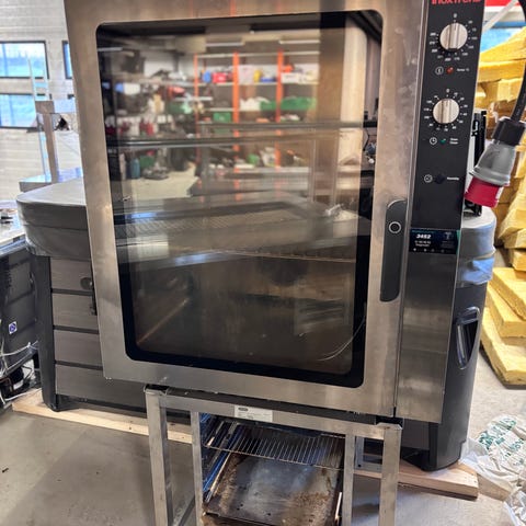 Oppvaskvogn i rustfritt stål utstyrt med flere plastkurver i ulike farger og størrelser. Vognen har hjul for enkel forflytning og er egnet for oppbevaring og transport av oppvask i kommersielle kjøkken eller lignende miljøer.