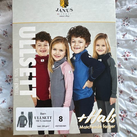Janus ullsett med hals i str 8 år. Diskret grønn farge.
