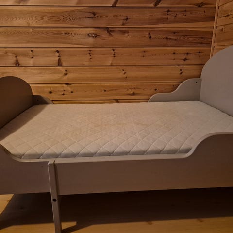 Seng selges i str 75x160. Med sengehest. Madrass kan følge med, men den er bytteklar. Sengen er hel og grei, men med en del bruksmerker etter bruk av flere barn. Selges derfor billig