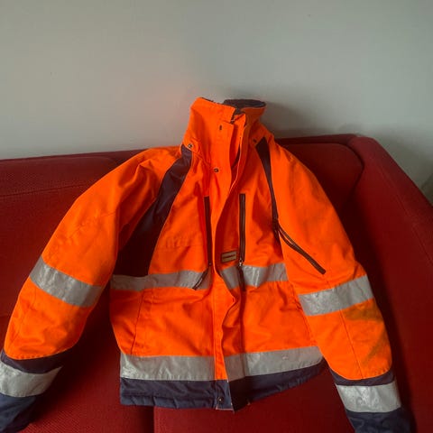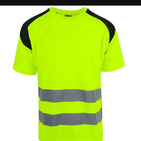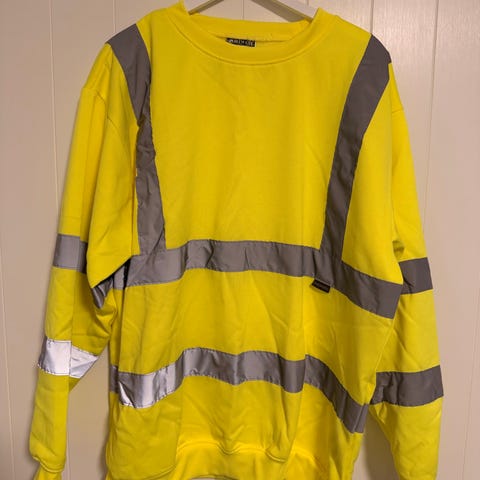 Jobman Hi-viz T-shirt med refleksstriper. Den er str. S som det står, men er stor i størrelsen. Ville sagt den er ca. str. L.