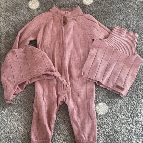 Bringebær färgad vinterdress i merino från Cubus. Størelse 62/68, men føles stor. Kan vikas över vid händer och fötter för att hålla de extra varmt