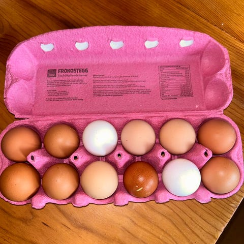 Vi selger også mix av fargerike egg fra 40,- stk.