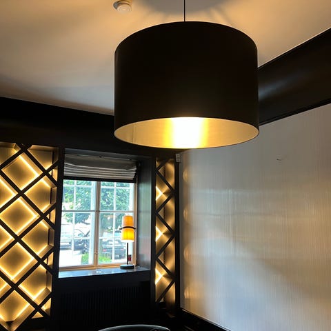 Jeg har satt inn dimmbare pærer som fortsatt fungerer. Hengt pent i leiligheten i 2 år, selges nå på grunn av flytting. Lampen er skjør, så kan dessverre ikke sendes. 62 cm i diameter. Er mulighet for levering med bil innenfor ring 3/Oslo mot 70 kroner.