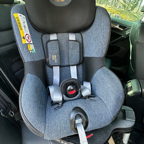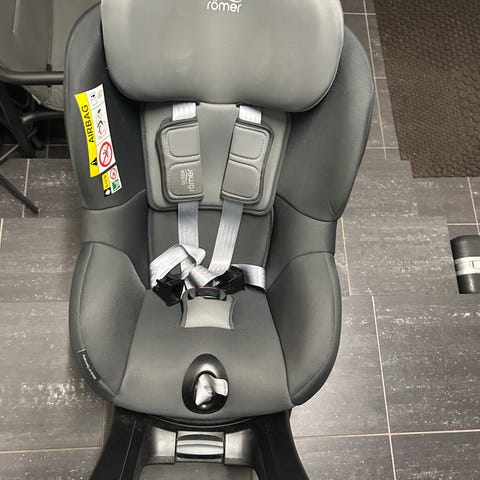 Britax Römer DUALFIX M i-SIZE. Ble kjøpt på grunn av at det var et av de sikreste barnesetene på markedet kombinert med et flott utseende.