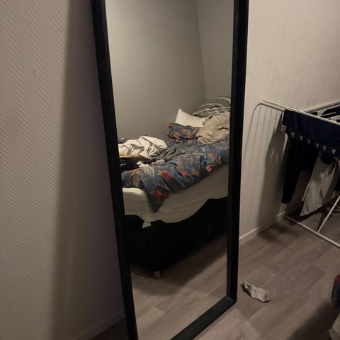 Stående gulvspeil i sort metall.