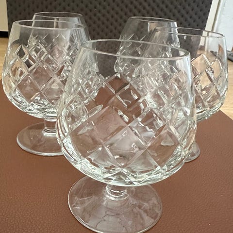 Selger 6 stykk store vintage / retro champagne glass for kr 125,- pr stykk . De selges kun samlet og da blir totalprisen kr 750,-Glassene er hele og pene og har ingen skår eller nag og de ser ut til omtrentlig aldri og ha blitt brukt . Glassene har følgende mål :