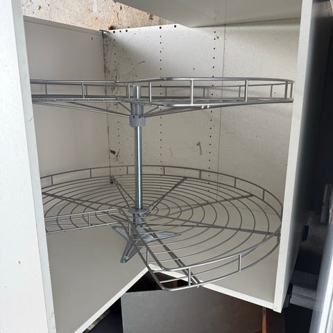Halv Karusell til hjørnebenk med trådhyller. Den har 2 hyller med valgfri høyde (se bilder)