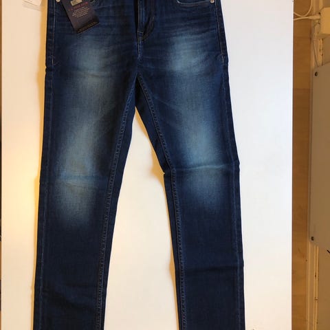 Klassisk straight fit i kraftig denim – 100 % bomull uten stretch.