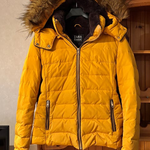 Zara lang boblejakke med strikk i midjen, Str M